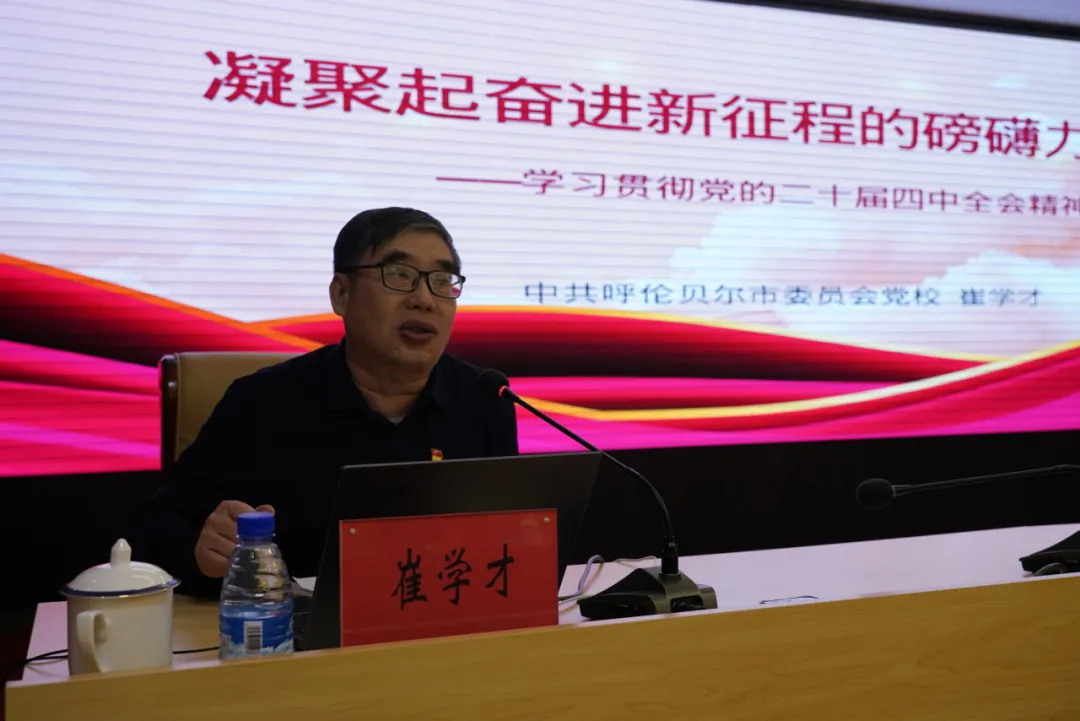本次培训特邀呼伦贝尔市委党校崔学才教授进行授课,崔教授结合深厚的理论功底和丰富的学术研究经验,以“凝聚起奋进新征程的磅礴力量”为主题,系统解读了党的二十届四中全会的重大历史意义和核心要义,全面回顾了“十四五”时期我国发展取得的重大成就,重点阐释了“十五五”时期经济社会发展的总体要求、主要目标和重点任务,尤其围绕社会主义民主法治建设、统筹发展和安全等方面进行深入剖析。授课内容既有理论高度,又有实践深度,帮助参训人员进一步理清工作思路、指明了职责方向。
