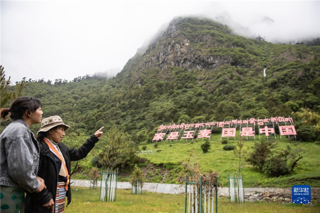 在西藏隆子县玉麦乡,卓嘎(右)给女儿巴桑卓嘎讲述她为国守边的故事(7月10日摄)。新华社记者 孙瑞博 摄