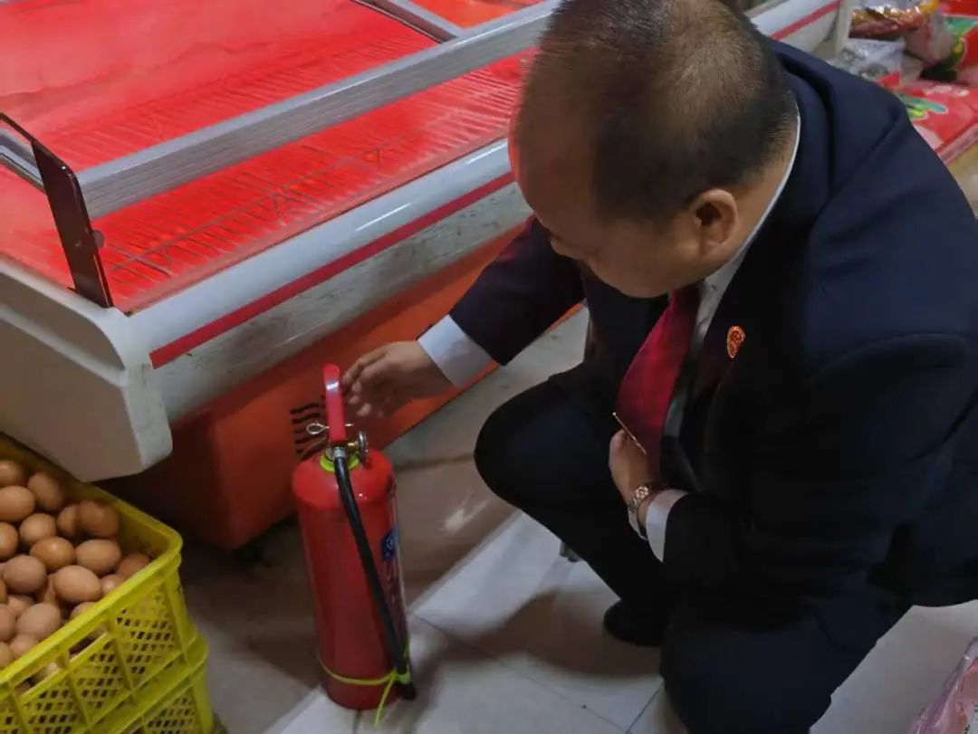 随后,检察人员对食品零售店的经营情况进行了查看,检查是否售卖过期食品、肉类商品是否经过检疫等情况,发现个别零售店存在消防设施被遮挡、违规经营及超范围经营等问题,并针对这些隐患现场提出整改建议。