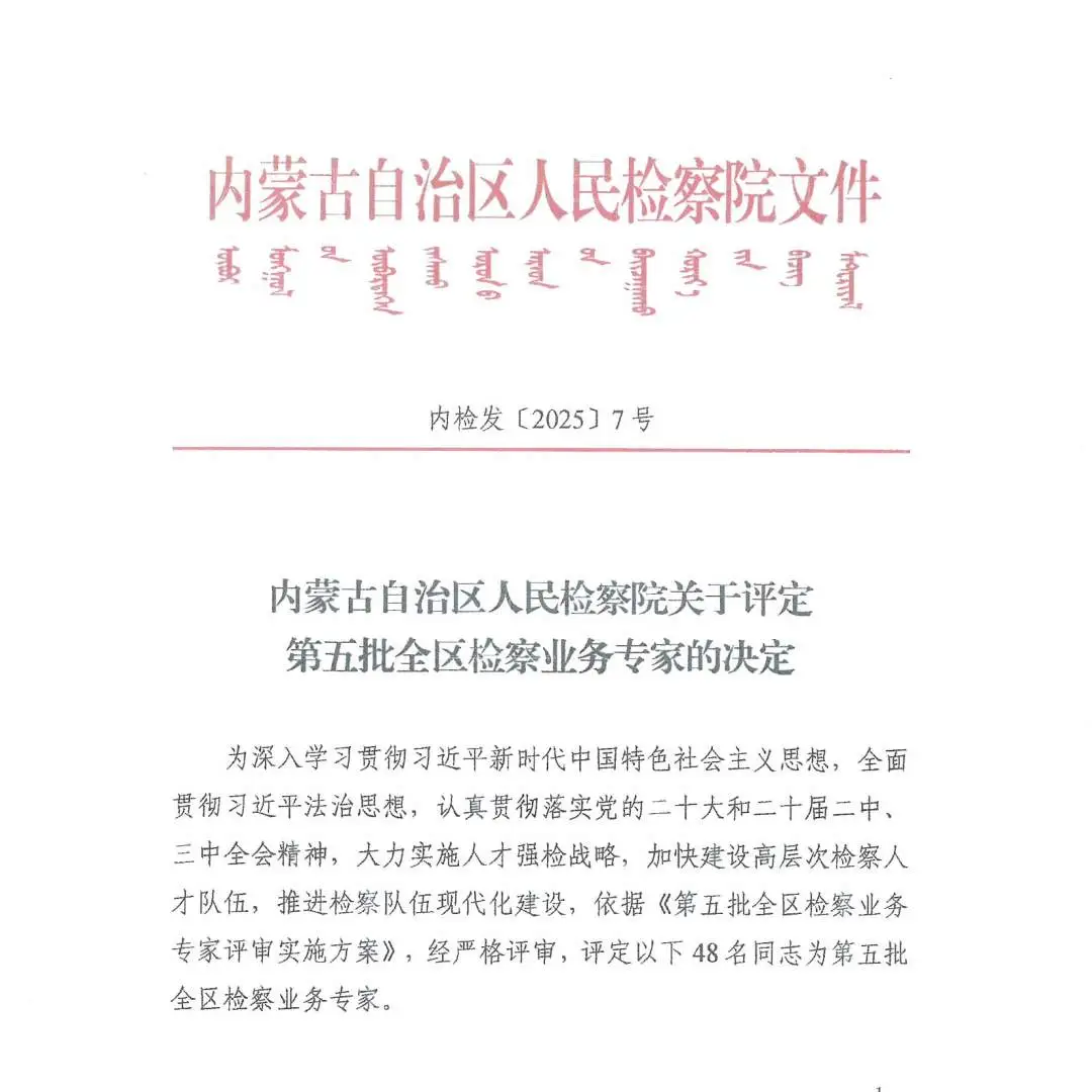 为进一步向全区检察工作“三年一大变”目标迈进,持续深化人才强检战略,加快推进高层次检察领军人才队伍建设,近日,自治区检察院组织开展了第五批全区检察业务专家评审工作,其中,鄂温克族自治旗人民检察院党组成员、副检察长伊凡获评第五批全区检察业务专家称号。