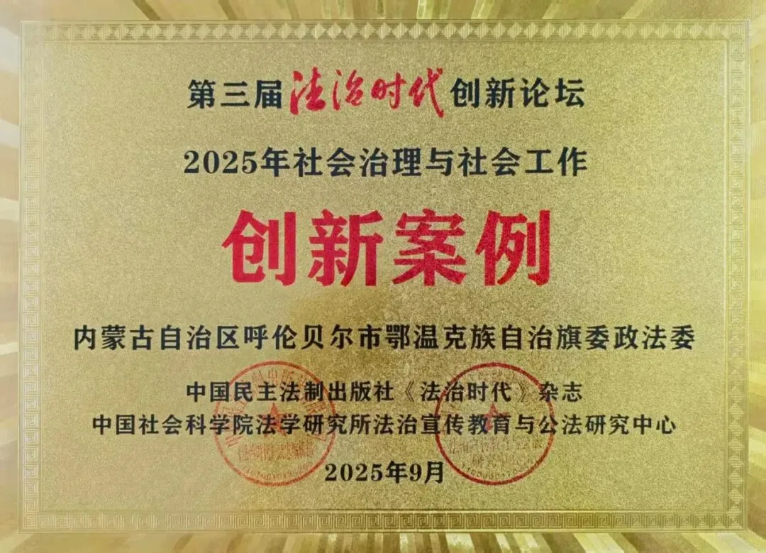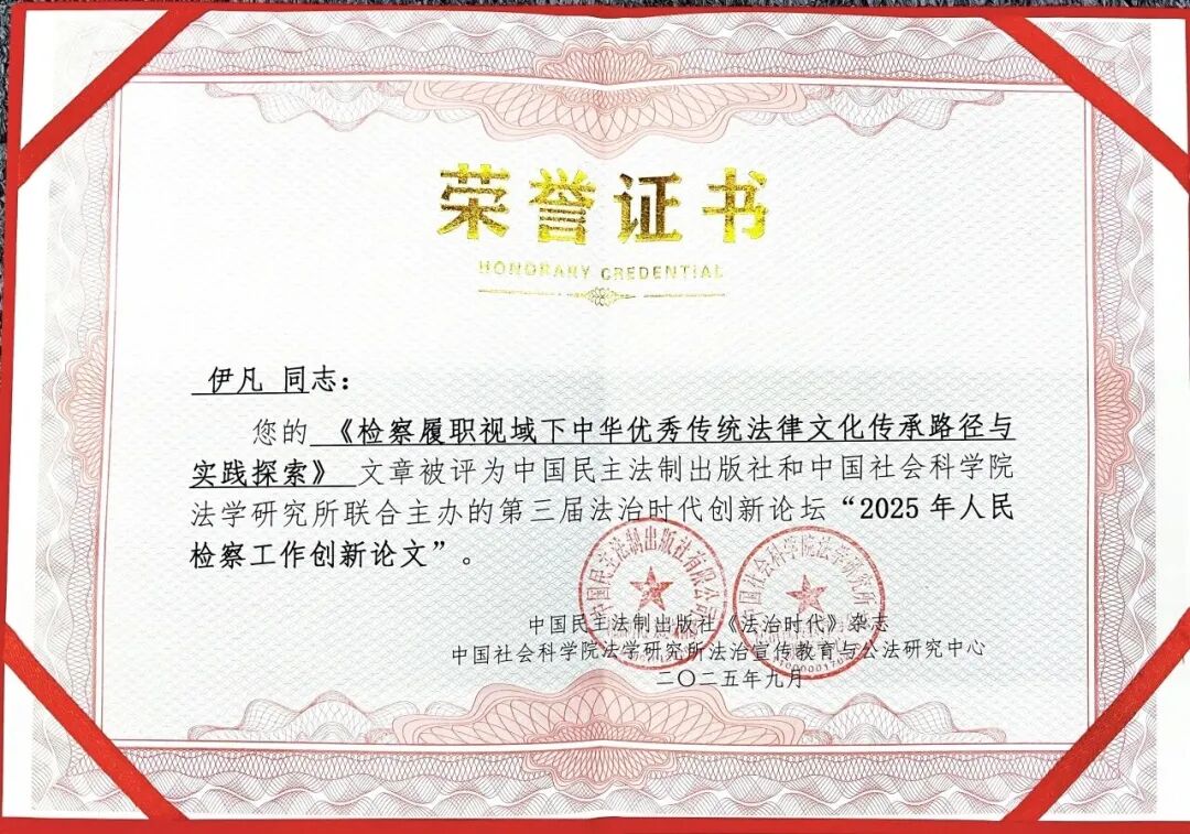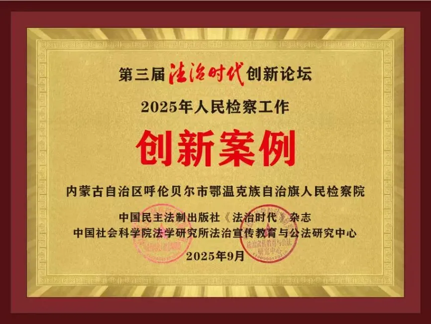 近日,从第三届法治时代创新论坛传来振奋人心的多重喜讯,鄂温克族自治旗政法系统在全国众多参评单位中脱颖而出,一举斩获多项荣誉。鄂温克旗委政法委《执法监督与法律监督协作机制的探索与实践》案例,鄂温克旗人民检察院《深耕民生“小”案,筑牢社会治理根基》成功入选“第三届法治时代创新论坛2025年法治创新案例”;鄂温克旗人民检察院论文《检察履职视域下中华优秀传统法律文化传承路径与实践探索》获评“第三届法治时代创新论坛2025年人民检察工作创新论文”。