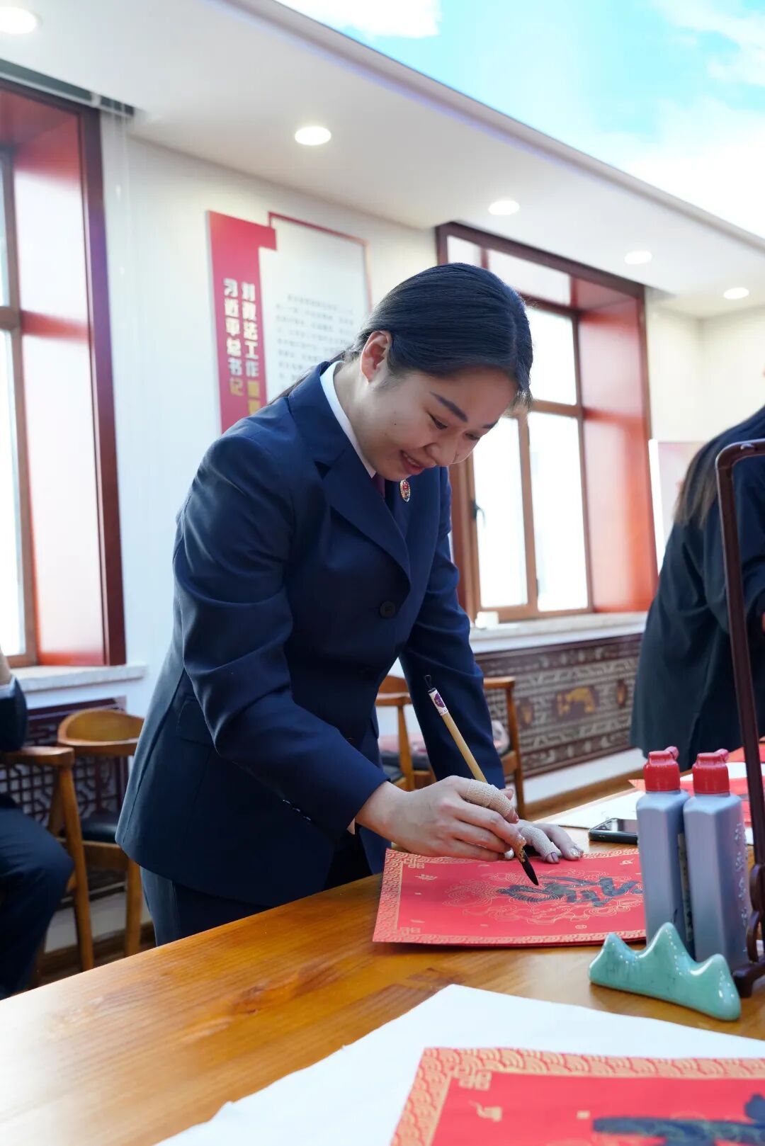 为弘扬和传承中华优秀传统文化,促进精神文明建设和检察文化建设,临近春节,鄂温克族自治旗人民检察院开展“挥毫迎春辞旧岁 舞墨送福添新彩”书法活动,为即将到来的蛇年增添了一份独特的文化韵味与温暖祝福。