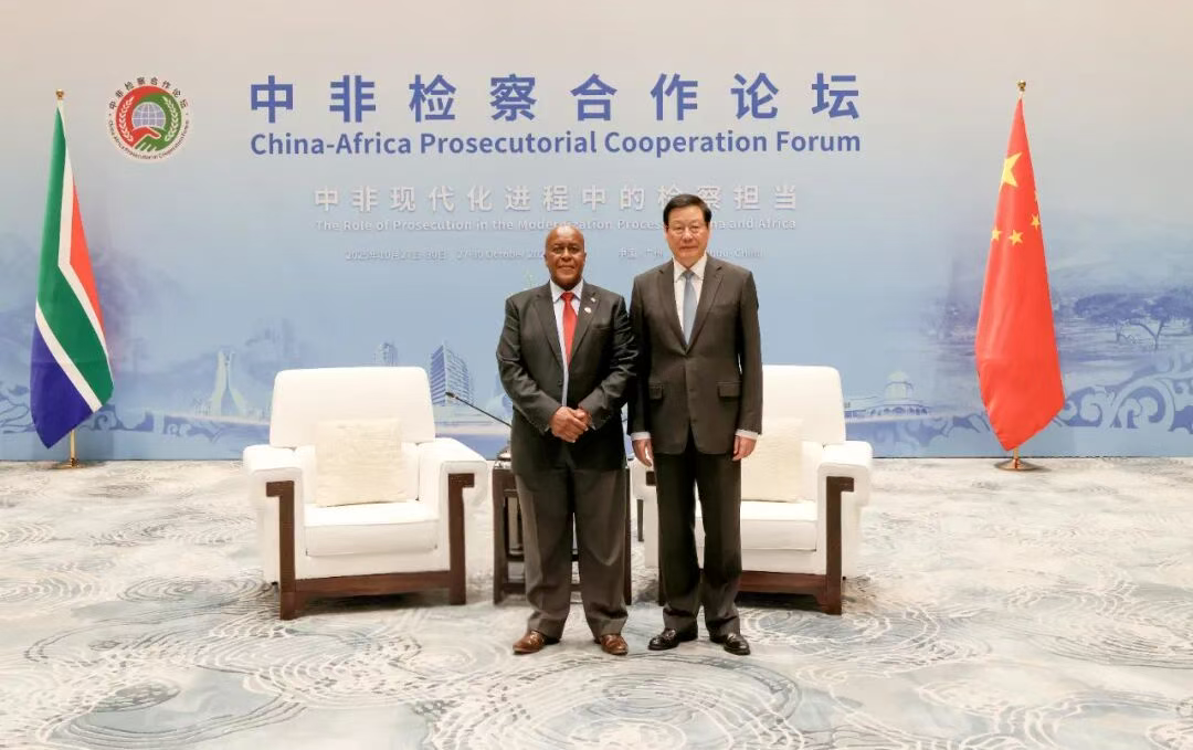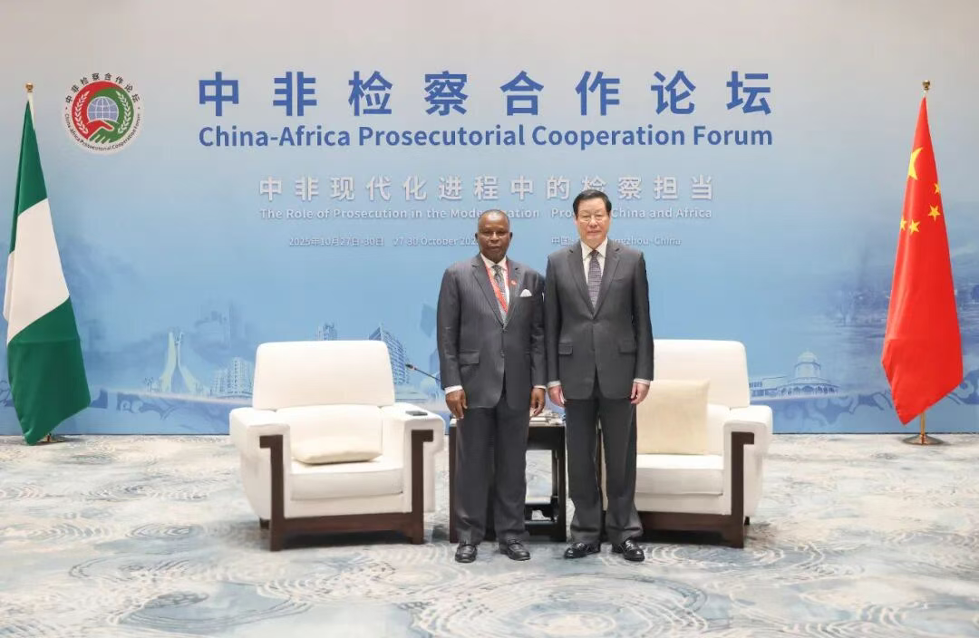 应勇介绍了中国法治建设、检察工作有关情况。他说,全面依法治国是中国的宪法原则和中国共产党治国理政的基本方略。中国检察机关作为国家的法律监督机关和保障国家法律统一正确实施的司法机关,正在中国共产党领导下,认真落实中共二十大和二十届历次全会精神,依法履行法律监督职责,持续推进习近平法治思想的检察实践,努力以检察工作高质量发展支撑和服务中国式现代化。中国检察机关愿与非洲国家检察机关一道,共同落实好中非国家领导人重要共识,深化交流互鉴,在打击跨国犯罪、腐败犯罪、有组织犯罪,刑事司法协助,遣返引渡罪犯,保护投资者合法权益,检察人员交流培训,检察信息化建设等方面加强合作,共同维护各自国家主权、安全、发展利益,更好造福中非各国人民。
