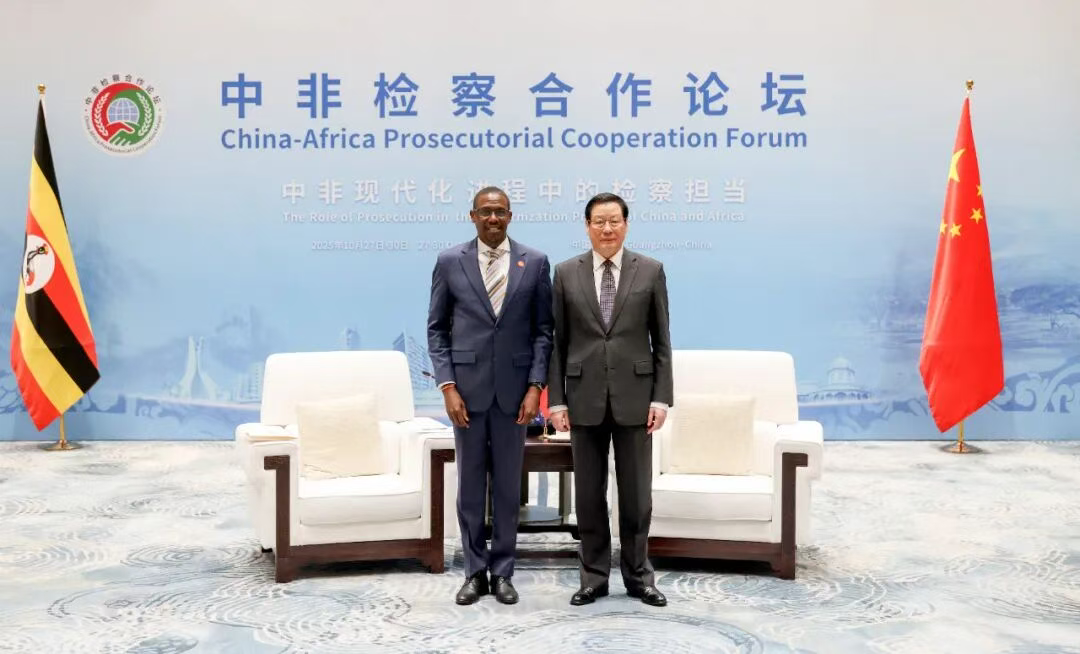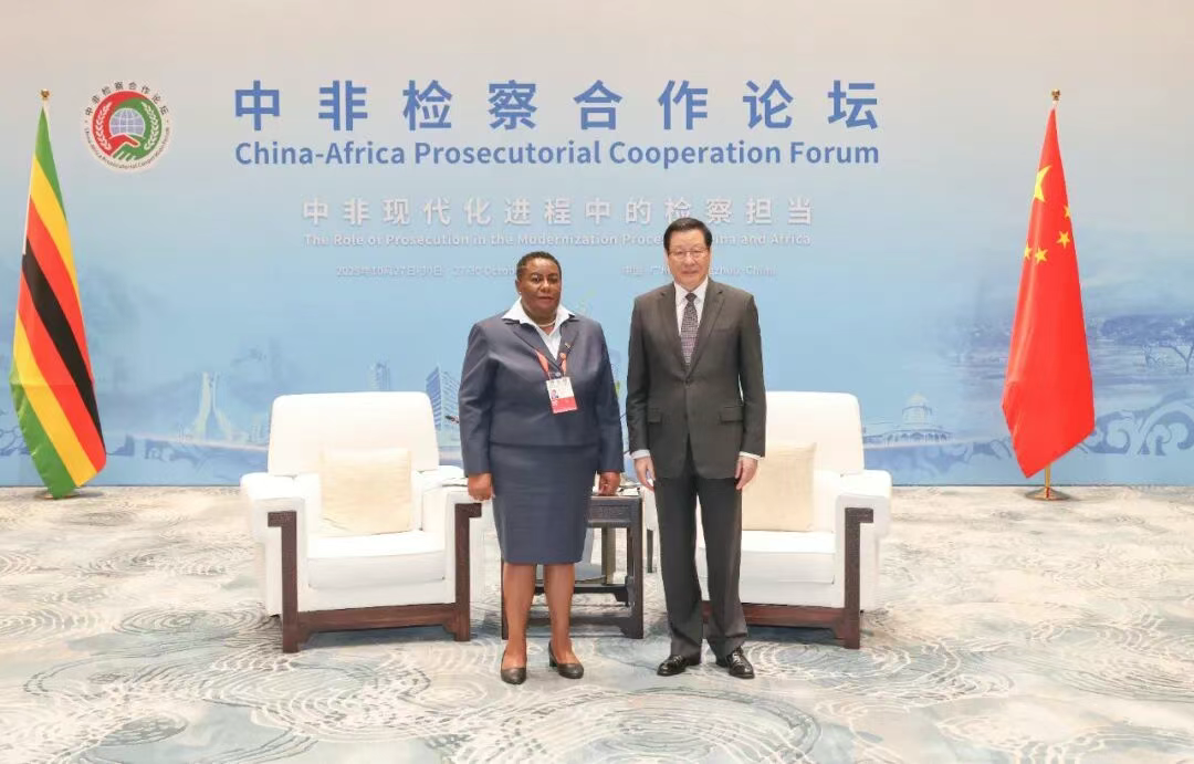 10月27日至28日,中华人民共和国首席大检察官、最高人民检察院检察长应勇在广州分别会见出席中非检察合作论坛的阿尔及利亚总检察长马吉德·阿卜杜拉希姆、刚果民主共和国总检察长菲尔明·姆文德、埃及总检察长穆罕默德·肖基·阿亚德、埃塞俄比亚总检察长汉娜·塞拉西、肯尼亚总检察长多尔卡丝·奥多尔、尼日利亚总检察长拉蒂夫·法格贝米、乌干达总检察长基里奥瓦·基瓦努卡、赞比亚总检察长迪马斯·卡贝沙、津巴布韦总检察长洛伊丝·莫约和摩洛哥副总检察长贾米拉·塞德琪、南非副总检察长西邦吉·姆津亚迪。