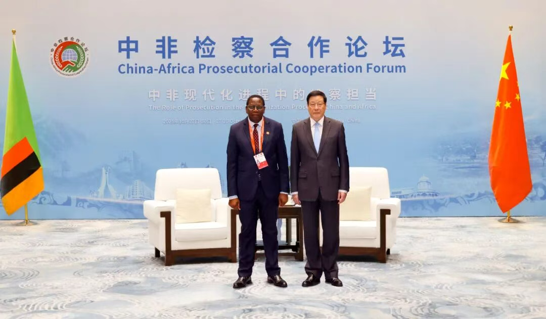应勇与赞比亚总检察长迪马斯·卡贝沙进行会见。