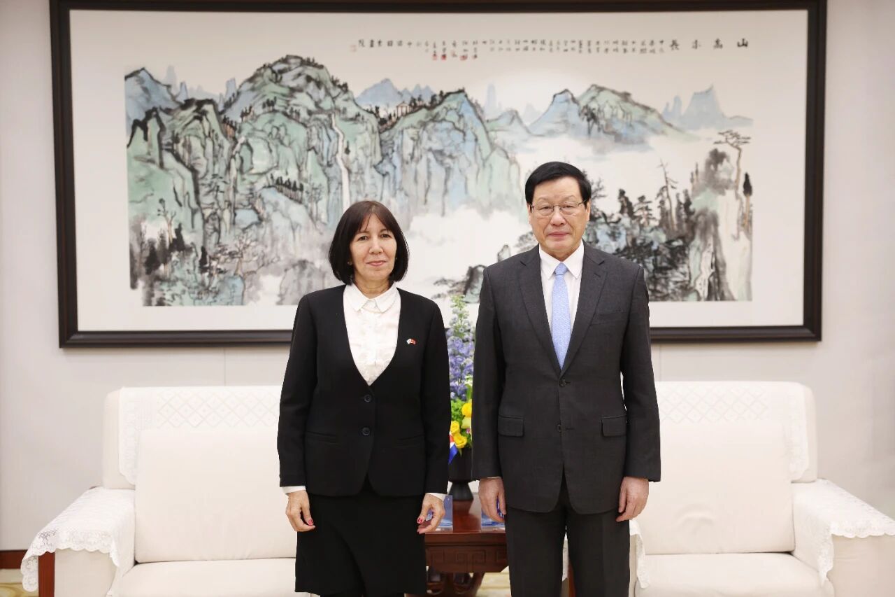 古巴驻华大使白诗德参加会见。