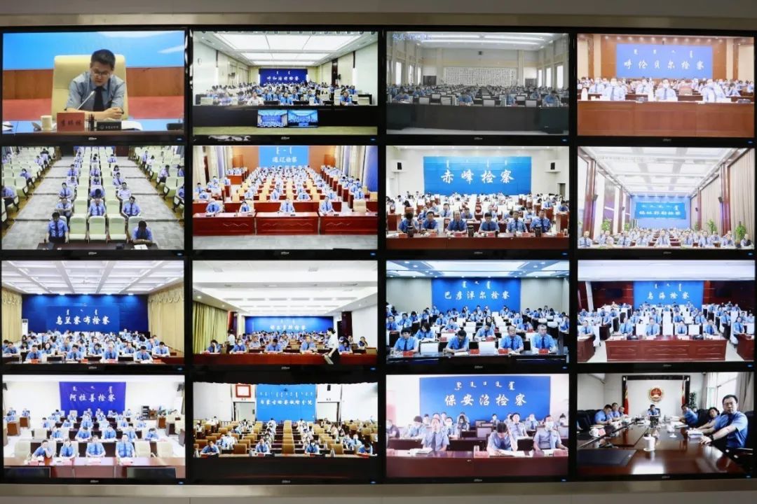 自治区检察院班子成员、厅级干部,机关各内设机构和直属事业单位全体检察人员在现场参加会议,各盟市地区(分)院、基层院全体人员通过视频会议形式参加会议。
